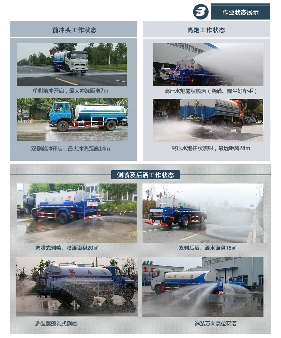 標(biāo)準(zhǔn): 泵性能符合機(jī)械部標(biāo)準(zhǔn)《灑水車(chē)技術(shù)條件》Q(chēng)C/T29114-93中對(duì)泵規(guī)定的要求。沖水距離在20米以上,楊程30米以上,每分鐘1000轉(zhuǎn),自吸高度6米。