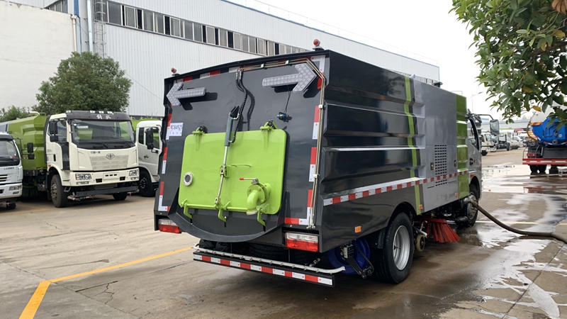 底盤配置(可選): 1、輕卡型,朝柴 上裝配置: 1、帶2個中置掃盤;中置超寬吸嘴;雙層吸塵筒;康明斯170馬力副發(fā)動機;臺灣液壓閥;大力馬達;德國高壓水泵(前沖/側(cè)噴/中噴/后噴霧)/側(cè)沖洗水槍/垃圾箱自潔裝置);萬向高壓路沿清洗;威龍低壓泵(前沖),氣動球閥控制;4mm不銹鋼垃圾箱;不銹鋼水箱;德國控制器;尾部箭頭燈;機油、垃圾箱、水箱均帶防溢或低位報警裝置;倒車及洗掃狀態(tài)室內(nèi)監(jiān)視器;多種語音提示;倒車自動保護、防傾倒垃圾翻車保護、檢修安全保護;20m高壓沖洗卷盤;刷臂轉(zhuǎn)動機構(gòu)使用德國進口高新耐磨工程隔套,免打黃油;精密冷彎無縫液壓油管;運動控制器一鍵電腦控制。 ![]() 產(chǎn)品功能特點