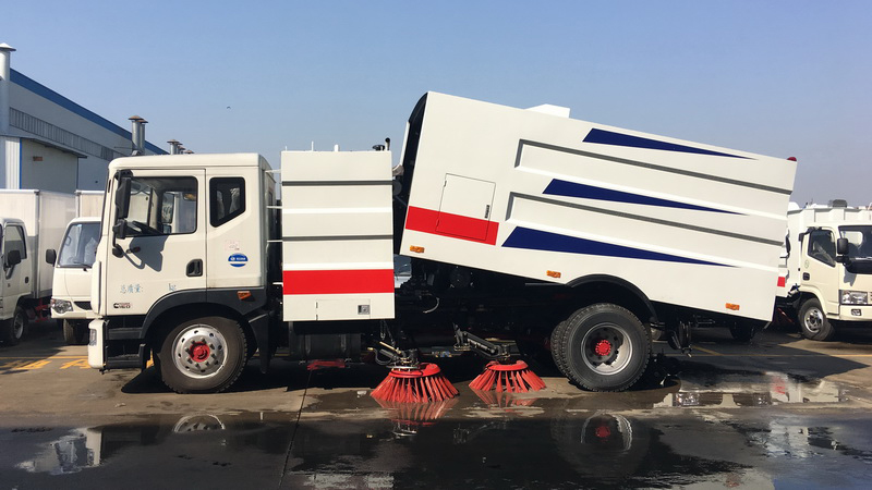 1、采用吸掃結(jié)合的方式收集垃圾,濕式除塵、電液控制,液壓傾翻卸料的作業(yè)方式對路面進(jìn)行清掃作業(yè)。
